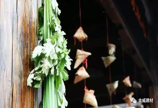 端午節(jié)當(dāng)天,人們會(huì)在院門(mén)前和房檐下掛艾草或菖蒲,因?yàn)槎呓詾橹胁菟帲孟x(chóng)害怕這種味道,能起到驅(qū)蚊的效果。